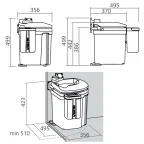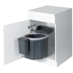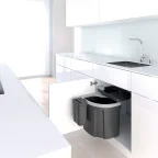 Abfallbehälter für Drehtüren mit hohem Fassungsvermögen und zusätzlichem Mehrzweckbehälter.