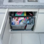 Abfallbehälter kippt beim Öffnen der Tür nach vorne.