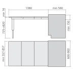 Gesamthöhe des Tisches: 725 mm bis 820 mm.