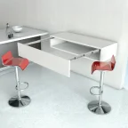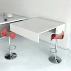 Für komplett im Korpus integrierte Tische, die sich mithilfe von 2 Klappscharnieren (nicht im Lieferumfang enthalten) ausklappen lassen.