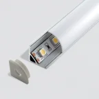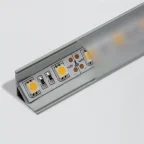 Ablängbares Profil aus silberfarben eloxiertem Aluminium mit Diffusor.