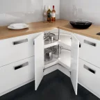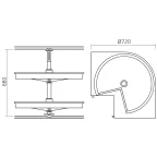 Set mit 2 3/4-Kreis-Drehböden Ø 720 mm mit Beschlag einschließlich Achsrohr 680 mm.