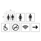 Abmessung: 75 x 75 mm.