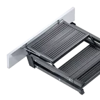 Zusammenklappbar und einschiebbar, Unterbringung im Sockelbereich: Lieferung mit Befestigungswinkel für Sockelblende.
