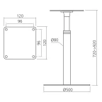 Höhenverstellbar von 720 bis 920 mm mittels Stellschraube.