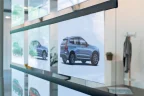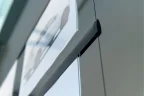 Die Aussparungen ermöglichen das Auswechseln von Postern oder Fotos, ohne dass die Taschen von der Schiene gelöst werden müssen.