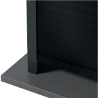 Die letzte Lamelle (Höhe 40 mm), die 2 Führungsprofile und die Blende sind aus farblich den Lamellen der Front angepasstem (Höhe: 25 mm/Lamelle).