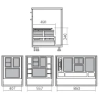 Stehendes System geeignet für alle Schubkästentypen einschließlich MERIVOBOX (außer LEGRABOX F) und Spülenschränke.