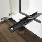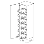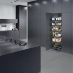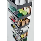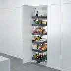 Panoramablick und direkter Zugriff auf die Inhalte der Tablare. Gleichzeitiger Auszug aller Elementen mit Öffnen der Tür.