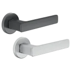 Türdrückerpaar mit runden Rosetten mit Rückholfeder.