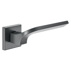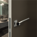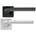 Türdrückerpaar mit quadratischen Rosetten mit Rückholfeder.