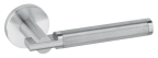Türdrückerpaar mit aufgesetzten Rosetten und Rückholfeder.