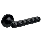 Türdrückerpaar mit runden Rosetten mit Rückholfeder.