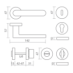 Türdrückergarnitur mit Rosetten mit Rückholfeder.