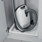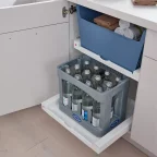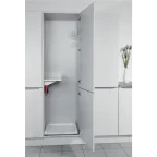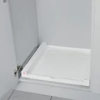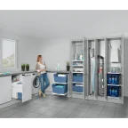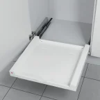 Lässt sich einfach aus dem Schrank herausziehen und eignet sich als Depot für Staubsauger, Wäschekörbe oder andere schwere Objekte.