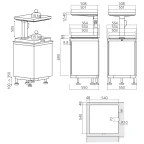 QANTO so positionieren, dass mind. 600 mm für das Ausziehen des unteren Tablars verfügbar sind und 300 mm Abstand zum Kochfeld eingehalten werden. Im ausgefahrenen Zustand ist ein Abstand von mind. 200 mm zu anderen Schränken/Regalen einzuhalten.