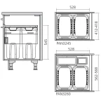 Komplettset bestehend aus Führungen und 2 Wäschekörben. PAN3260 zusätzlich mit Behälter für Waschmittel und Zubehör + fester Deckel.