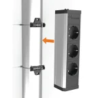 Bloc prises à fixer ou à poser dans une goulotte passe-câbles.