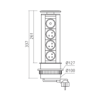 Equipé de 3 prises de courant avec fil d'alimentation de 3000 mm et d'une veille lumineuse (6 leds bleus et interrupteur).
