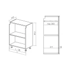 - Pieds hauteur 100 mm réglables de -15 à +30 mm.