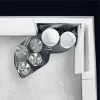 Set composé d'une ferrure et de 2 plateaux pour les hauteurs intérieures de meubles de 600 à 900 mm.