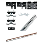 Composé de : 1 rail recoupable, 1 garniture de porte coulissante, 1 amortisseur, 1 traverse et 1 guide au sol.