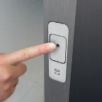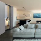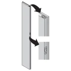 Déverrouillage facilité grâce à un bouton situé dans le chant de la porte.