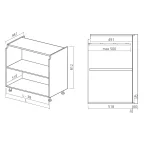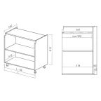 - Pieds hauteur 100 mm réglables de -15 à +30 mm.