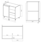 - Pieds hauteur 100 mm réglables de -15 à +30 mm.