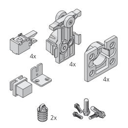 Ferrure pour 2 portes bois coulissantes suspendues Inslide (coulissement dans le meuble).
