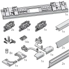Set complet (garniture et rails) pour 2 portes coplanaires, livré prêt à poser, aucune préparation nécessaire sur le corps de meuble.