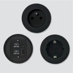 - Modèles avec prise de courant livrés avec 3 anneaux (noir, blanc et chromé).