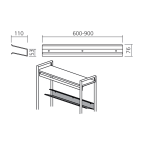 Tablette en métal prévue pour accueillir 3 paires de chaussures pour la longueur 600 et 4 paires pour la longueur 900 mm.