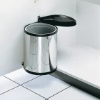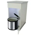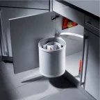 L'ouverture de la porte entraine la levée automatique du couvercle et la rotation de la poubelle.
