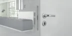 Serrure à pêne magnétique et mécanique (pour la condamnation de la serrure) à bec de cane avec têtière de 190 x 18 mm.