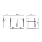 Geleverd met 2 afvalemmers en 2 individuele deksels.