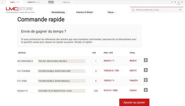Vous saisissez directement les références sans devoir les rechercher sur le site et ainsi gagnez du