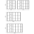 Voor corpus van 600 tot 1000 mm, met verstelbare tussenschotten en aluminium of inox afwerkprofielen.