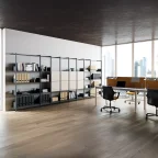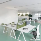Voor de bevestiging van een frontaal of zijdelings akoestisch paneel tussen 2 bureaus.