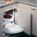 Verstelling van de bovenste draaibodem en het meenemen van de onderste draaibodem door het openen van de deur.