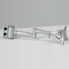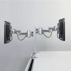 Geleverd met een kolom, 2 armen, de nodige kabelgeleiders en bevestigingsklem.