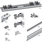 Complete set (garnituur en rails) voor 2 deuren in één vlak, montageklaar geleverd, zonder enige voorbereiding op het meubel.