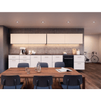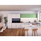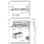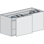 Bij een toepassing in een staand keukenmeubel, dekt de deur bovenaan het meubel af, gaat de geleiding op de binnenkant van het meubel en niet onder het meubel.