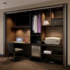 Bij geopende deuren hebt u toegang tot de volledige kastbreedte, in gesloten toestand liggen de deuren perfect in hetzelfde vlak.