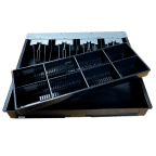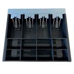 8 vakken voor muntstukken en 4 voor geldbiljetten + chequebakje.