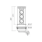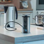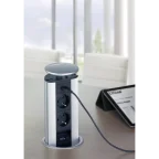 Inbouwstopcontact dat uitschuift naar boven. Penaarding.