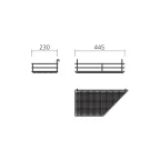 Met manden onder hoek van 45° hoogte 75 mm + 2 frontbevestigingen.