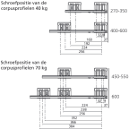 Per 20 paar: 2 ladezijwanden, corpusprofielen links/rechts, rugwandhouders links/rechts en 2 afdekkappen.