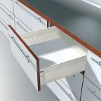 Enkelwandige lade hoogte 150 mm, enkel uittrekbaar en gemonteerd op een geleider met kunststofrollen.
