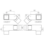 Beginstuk tot 90° oriënteerbaar 0-70 voor leuning TUB4025IN.